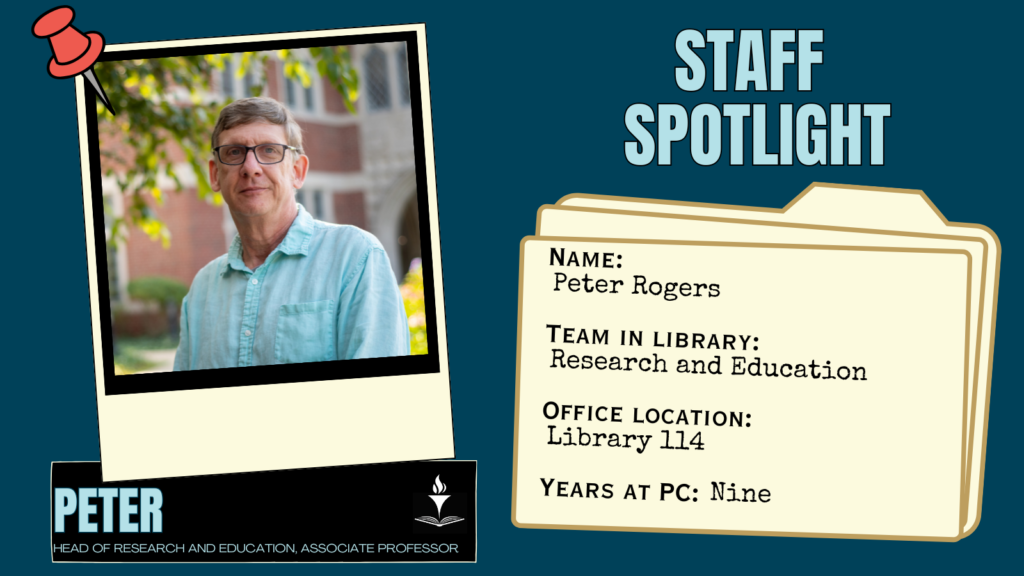 As Head of Research and Education and an Associate Professor, I end up doing a bit of everything having to do with assisting PC students, faculty, and staff in the discovery of high quality information for their work.